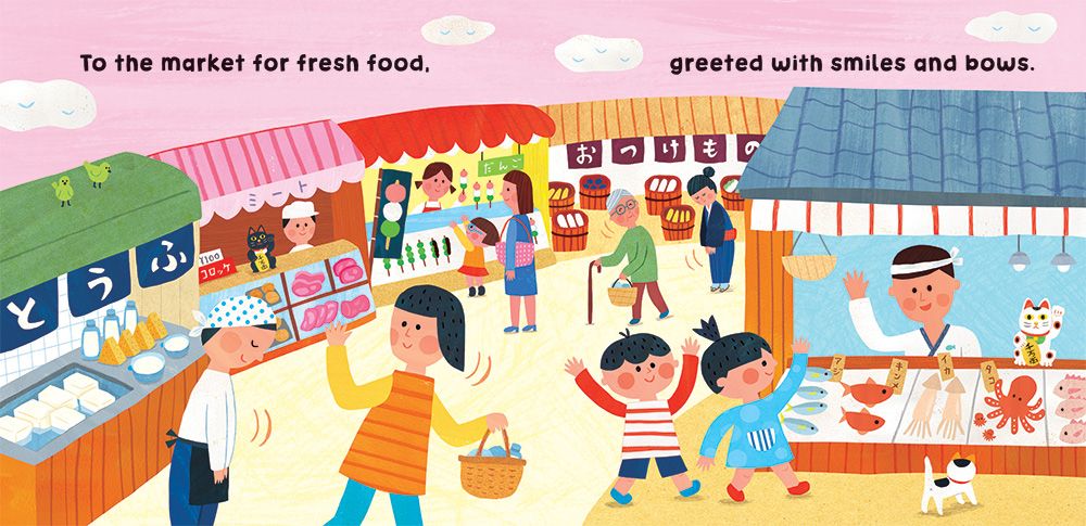 Float through the cherry blossoms, snack at the market and watch the stars twinkle following a day in Japan. With text and artwork developed especially for babies, author Emily Satoko Seo and illustrator Aunyarat Watanabe draw on personal experience of life in Japan to create this appealing board book for young readers.